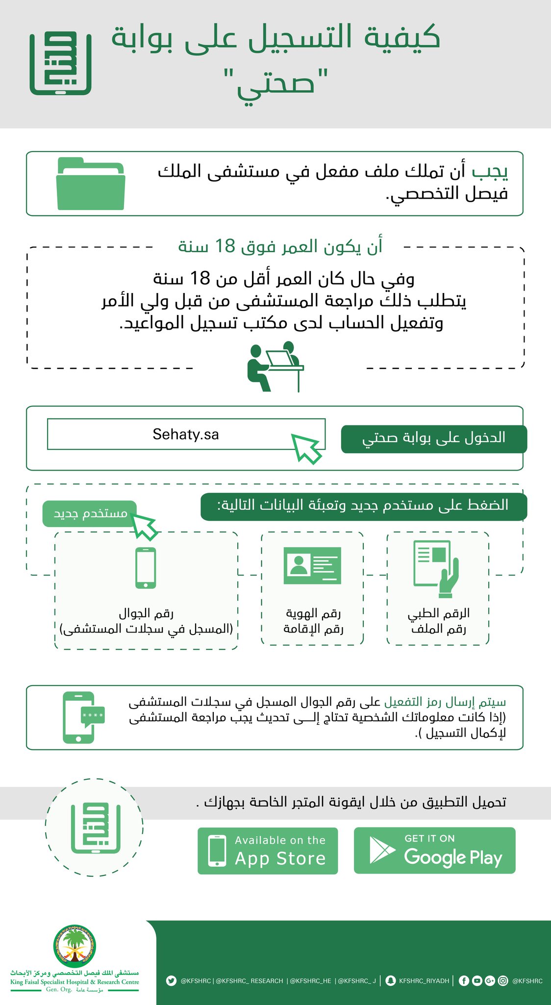طريقة التسجيل في مستشفى الملك فيصل التخصصي. يسر مستشفى الملك فيصل التخصصي ومركز الأبحاث المدينة المنورة أن يبدأ في بناء سجل للقدرات الوطنية المتميزة من ذوي الخبرة او حديثي التخرج في المجال الصحي والإداري من سكان منطقة المدينة المنورة. أعلن مستشفى الملك فيصل التخصصي ومركز الأبحاث عبر موقعه الإلكتروني عن توف ر وظائف إدارية وصحية شاغرة للرجال والنساء من السعوديين وغير السعوديين. تطبيق صحتي sehaty مستثفى الملك فيصل التخصصي تنزيل وشرحل خطوات التسجيل محتويات عرض 1 تطبيق صحتي sehaty مستثفى الملك فيصل التخصصي تنزيل وشرحل خطوات التسجيل 1 1 تطبيق صحتي sehaty 1 2 أهم الخدمات التي يقدمها تطبيق صحتي sehaty 1 3 التسجيل. مستشفى الملك فهد التخصصي بالدمام هو مركز رائد في توفير الرعاية الصحية التخصصية يهدف إلى توفير رعاية صحية إنسانية عالية الجودة متكاملة مع التعليم والأبحاث.
