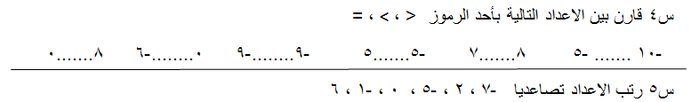مقارنة الاعداد الصحيحة وترتيبها اول متوسط