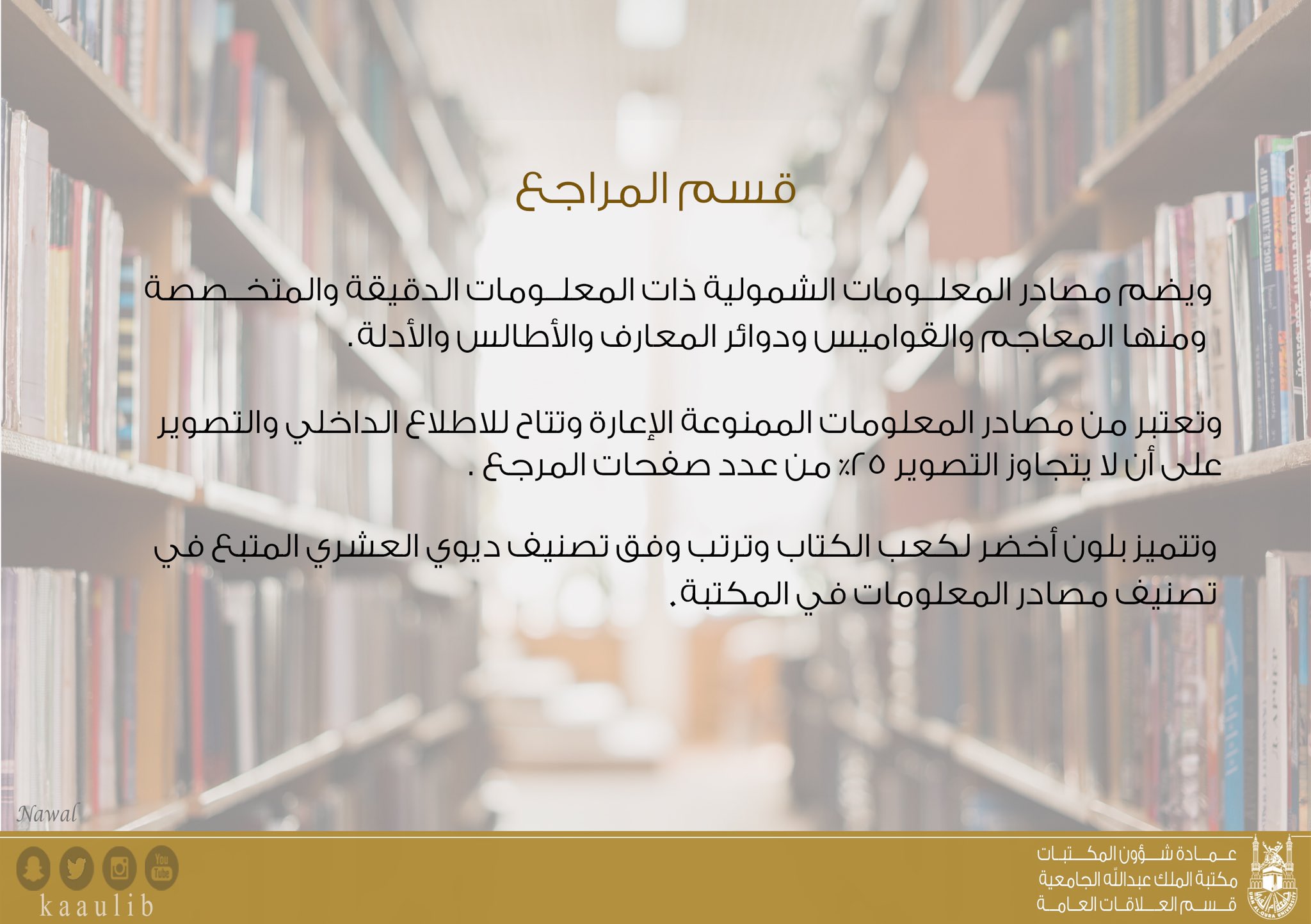 تهدف إلى جمع مصادر المعلومات وتنميتها بال. مؤسسة علمية ثقافية تربوية اجتماعية. مكتبة الملك عبدالله الجامعية المكتبة المركزية. مكتبة الملك عبدالله الجامعية.