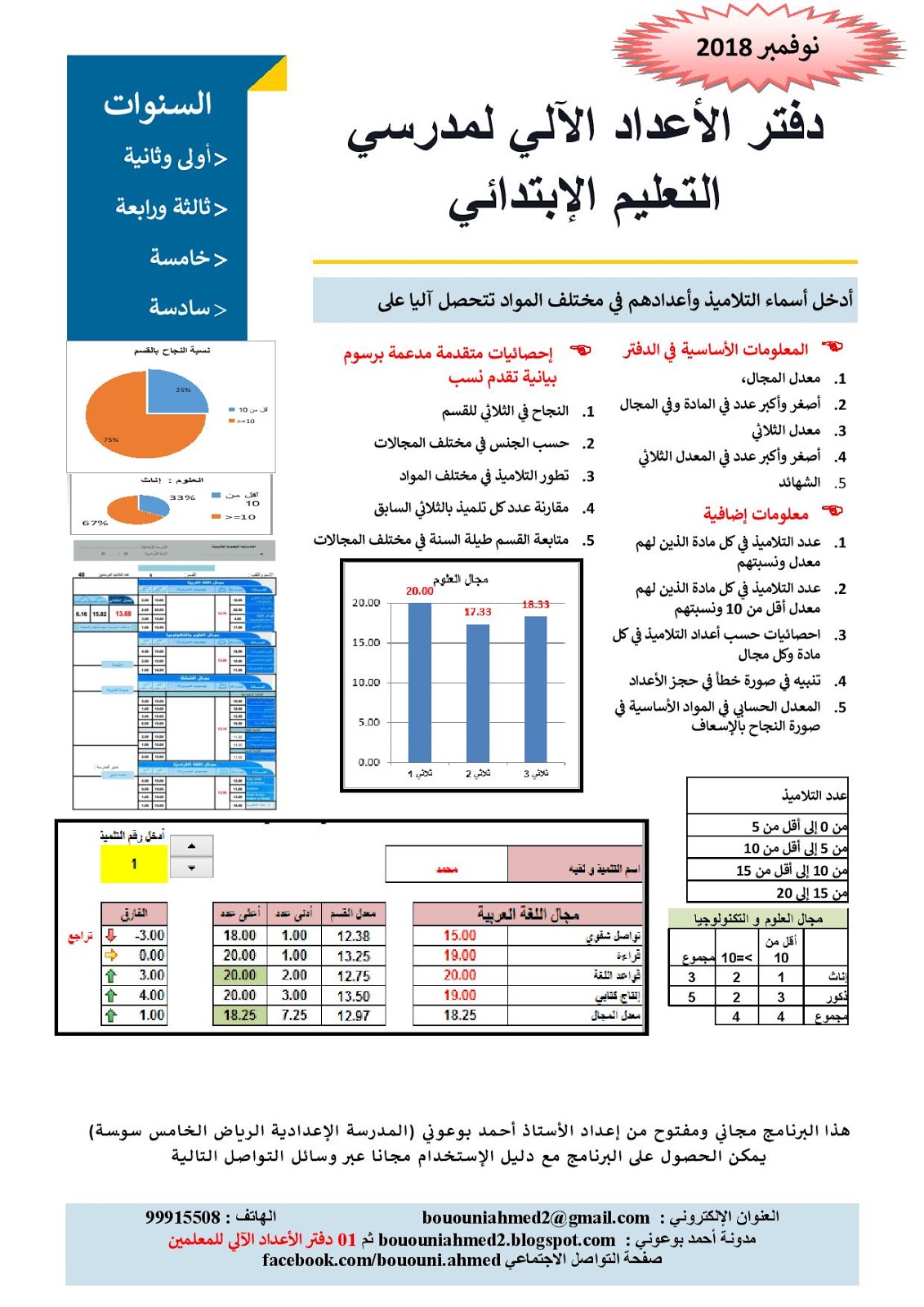 ملف التحصيل الدراسي الجديد المعدل ابتدائي